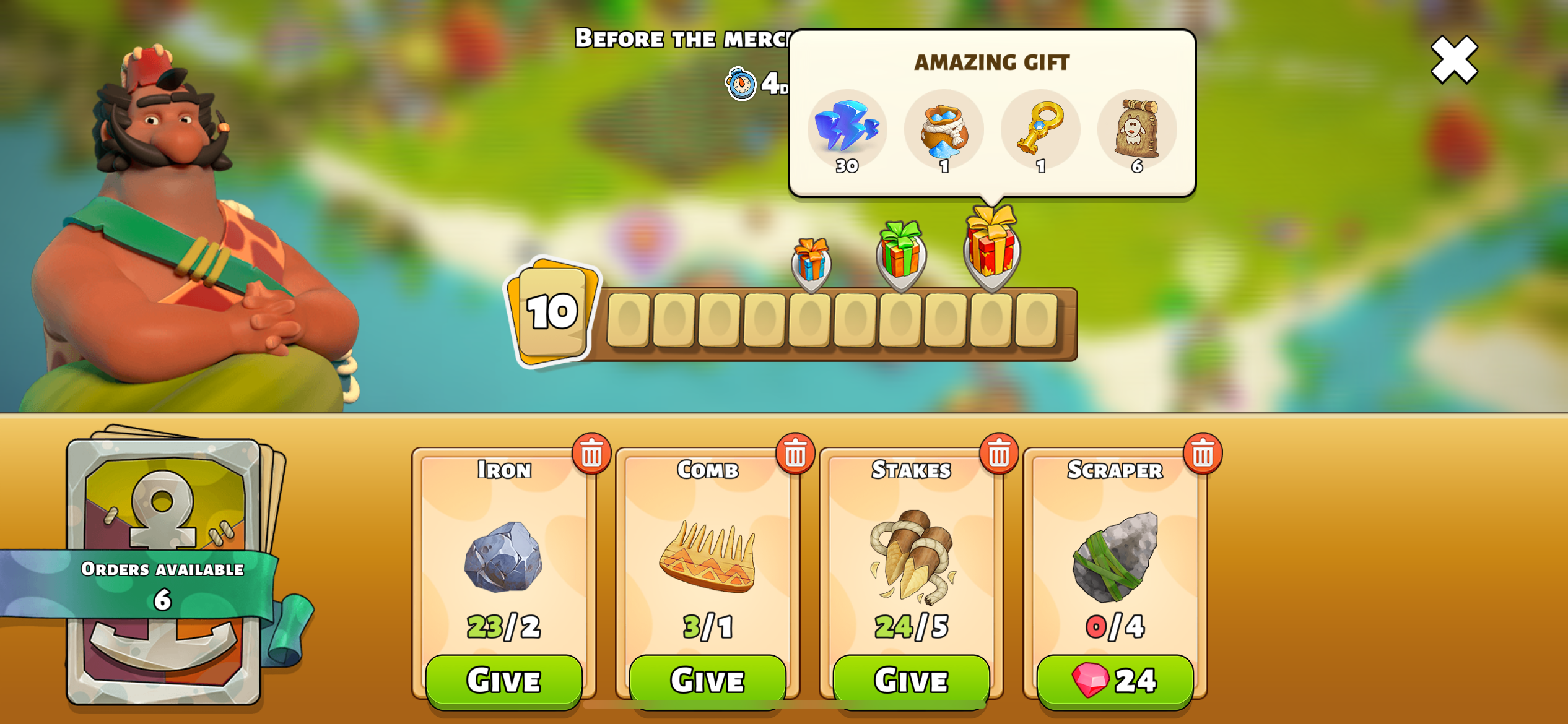 Fulfilling orders for the Merchant and Shaman will reward you with Energy and other goodies. Don’t forget the Order Board. Exchange your resources and you can get some Energy in the process. 📋✨