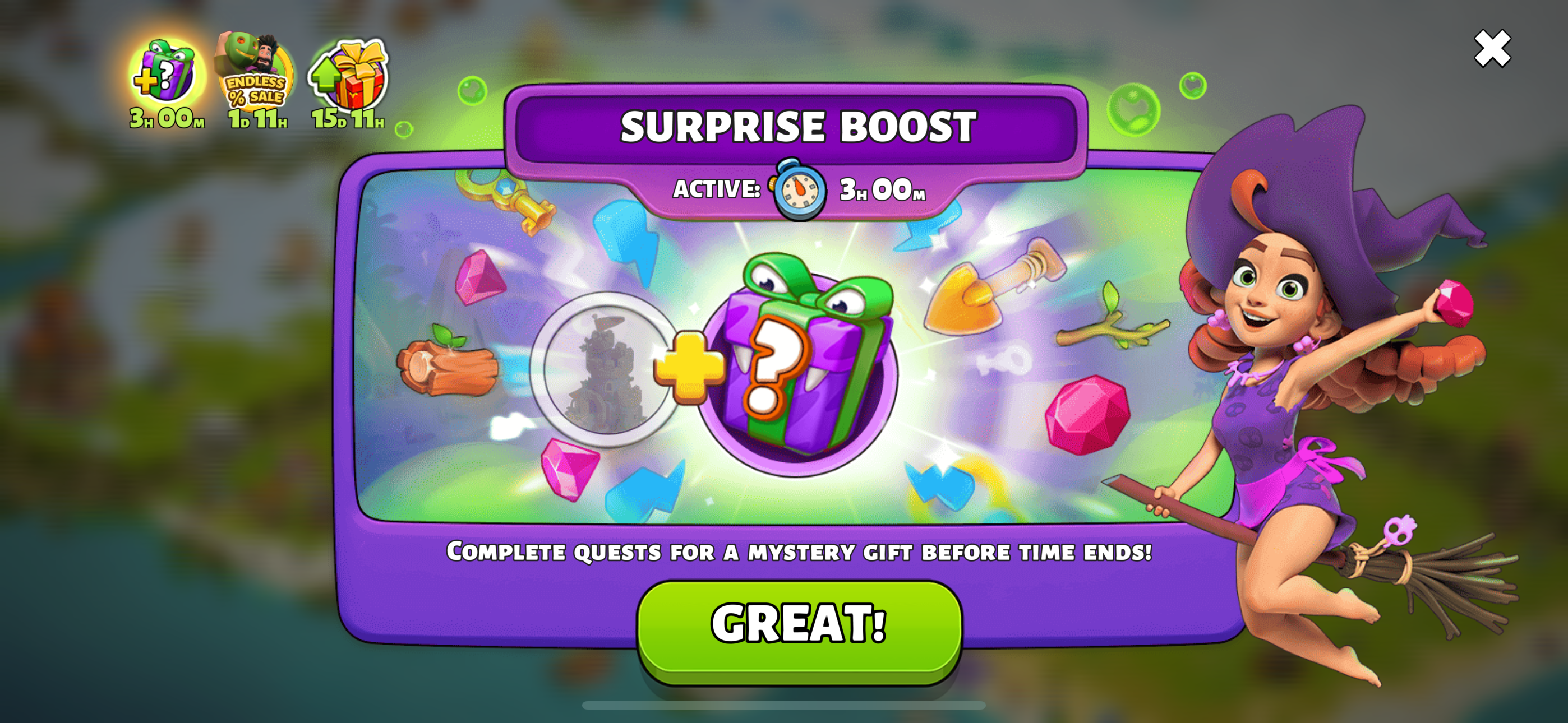 Ready for an extra prize? The Surprise Boost is your ticket to additional rewards on adventure quests—if you’re quick enough to complete them before time runs out! 🎁⏰