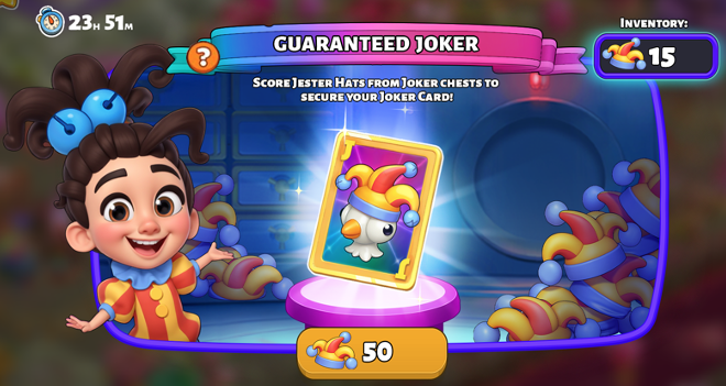 By collecting Joker Hats, you build progress toward a guaranteed reward.