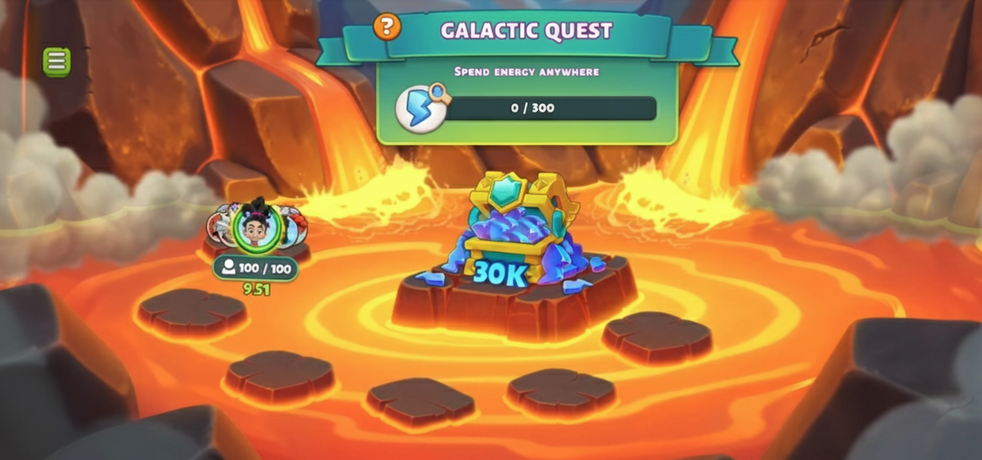 Aventura Volcánica es un evento competitivo basado en rachas, donde tú y un grupo de 100 jugadores compiten en una serie de desafíos contrarreloj. ¿El objetivo? ¡Completa cada nivel sin fallar—sin errores, sin quedarte sin tiempo—para llegar al círculo de ganadores y repartir el pozo de premios!